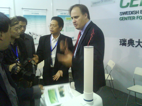 瑞典大使館節(jié)能科技中心主任TONY CLARK先生向觀眾介紹瑞典生態(tài)衛(wèi)生廁所